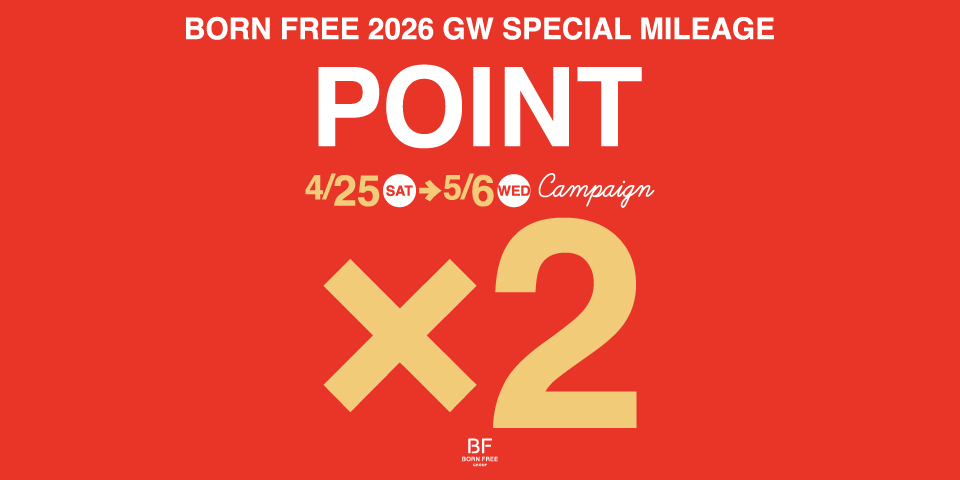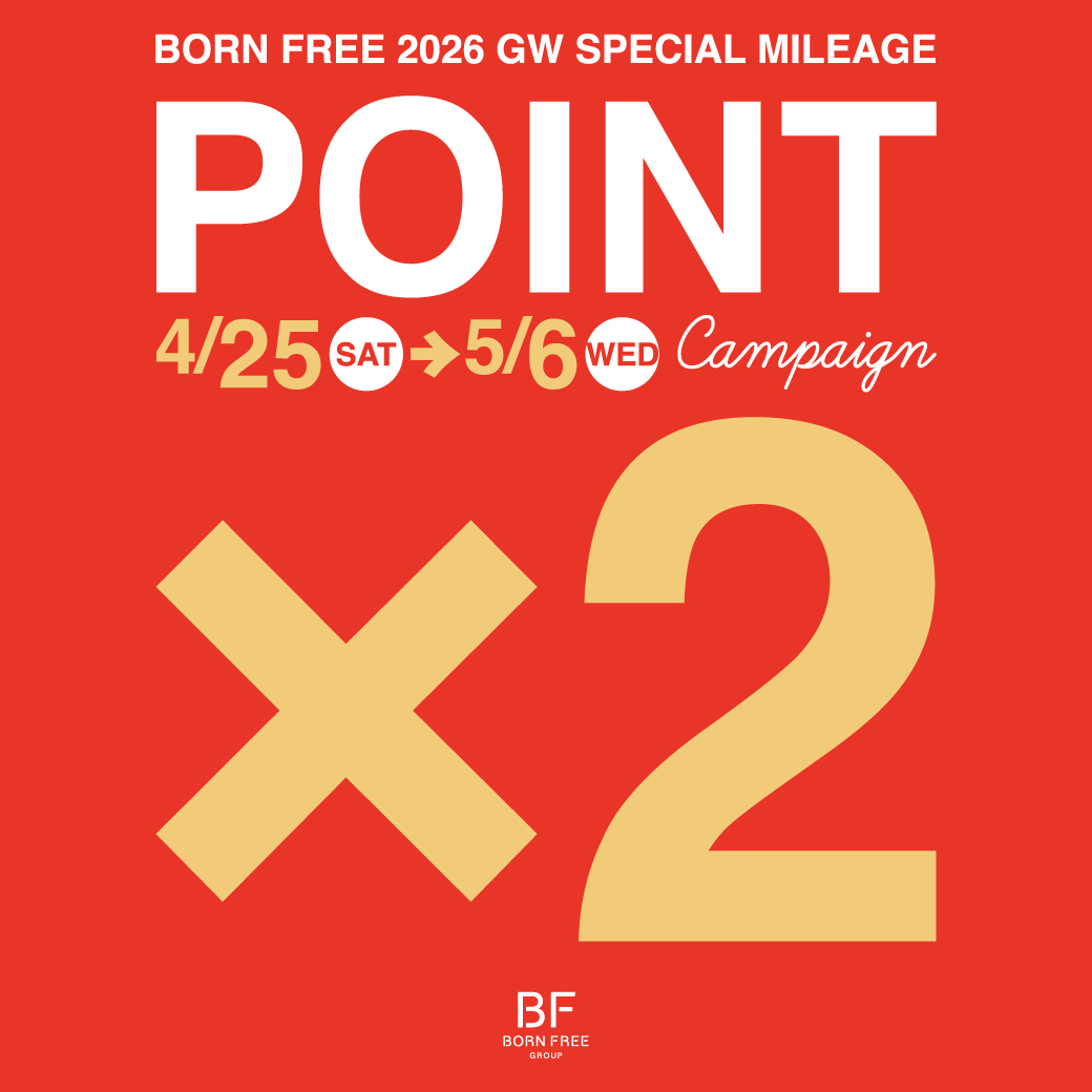 【4/25〜5/6まで!】BORN FREE 4店舗にて、Wポイントキャンペーン開催!